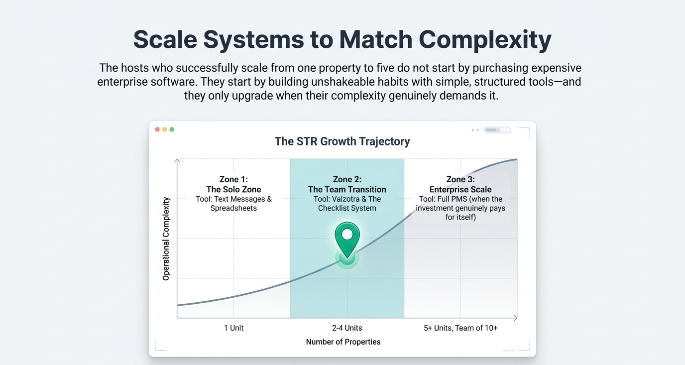 The hosts who successfully scale from one property to five start by building unshakeable habits with simple, structured tools — and only upgrade when their complexity genuinely demands it.